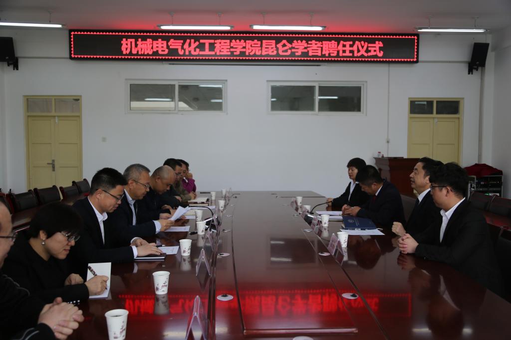“昆仑学者”聘任仪式在工科楼229会议室举行。学校党委常委、副校长曲义勇,张兆国教授和贾富国教授,成人在线