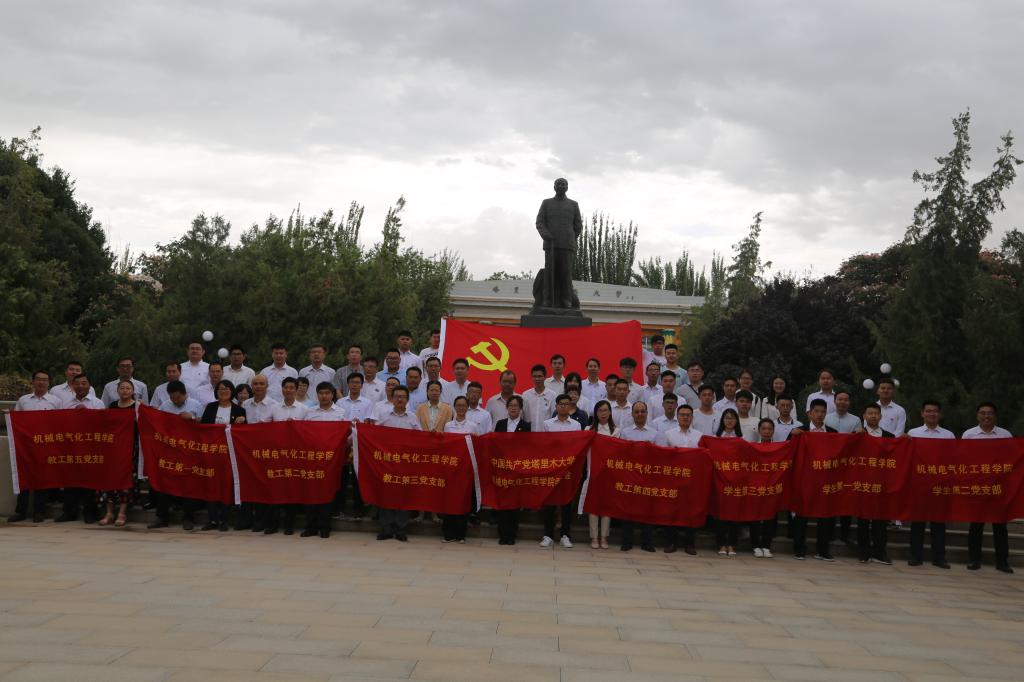所有在校教工和学生党员齐聚在王震将军铜像前,在成人在线