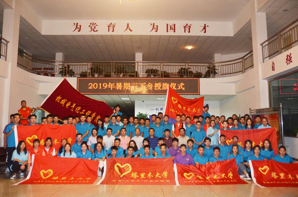 领导为各团队授旗。三名团队代表进行交流发言,分享了各自团队的准备情况和实践计划。张宏副院长分享了他在基层的工作的经历,希望同学们要以实际行动践行志愿者精神,展现塔大学子的责任与担当!