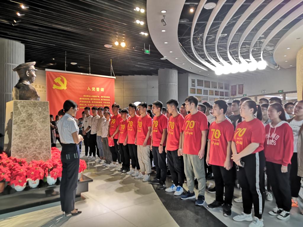 展厅外,师生们面对党旗重温入党誓词,大家深深的把誓言刻在心中,把理想信念记在脑海中,自觉做共产主义远大理想的忠实实践者。