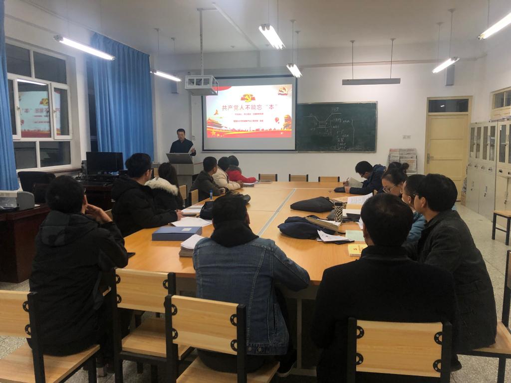 张宏以“共产党人不能忘‘本’”为题,围绕“共产党人不能忘‘本’,源自何处?、因何必要、如何践行和“如何提高青年教师科研能力四个方面为党员作了精彩的讲解。