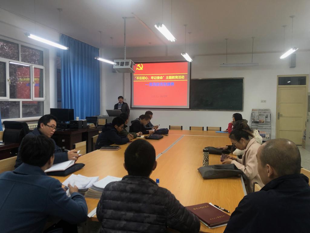 12月4日下午,成人在线 教工第二党支部书记杨丙辉在工科楼208室为教工第二党支部全体党员上专题党课。