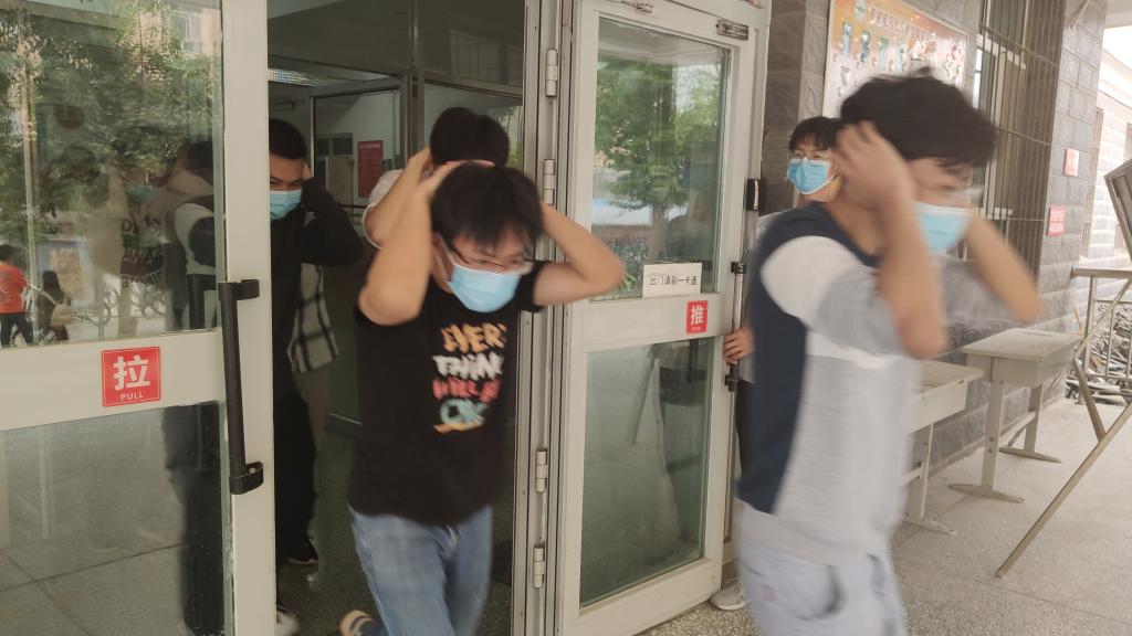 以班级为单位在宿舍楼宇组织了学生开展地震疏散演练,期间学生用心配合,服从命令,在极短的时间内按照预先制定的疏散路线,安全有序的撤离到安全位置;对一些高楼层无法第一时间进行撤离的学生,在地震来临时,学生们双手抱头,蜷曲身子,迅速躲避到宿舍书桌下进行安全避震,等待救援。