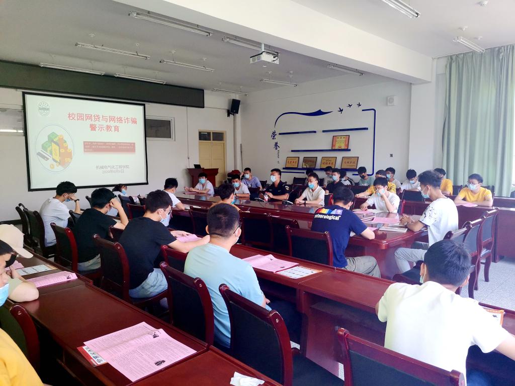 在工科楼229会议室组织大一至大三的班长开展“校园网贷网络诈骗警示教育”宣讲活动。