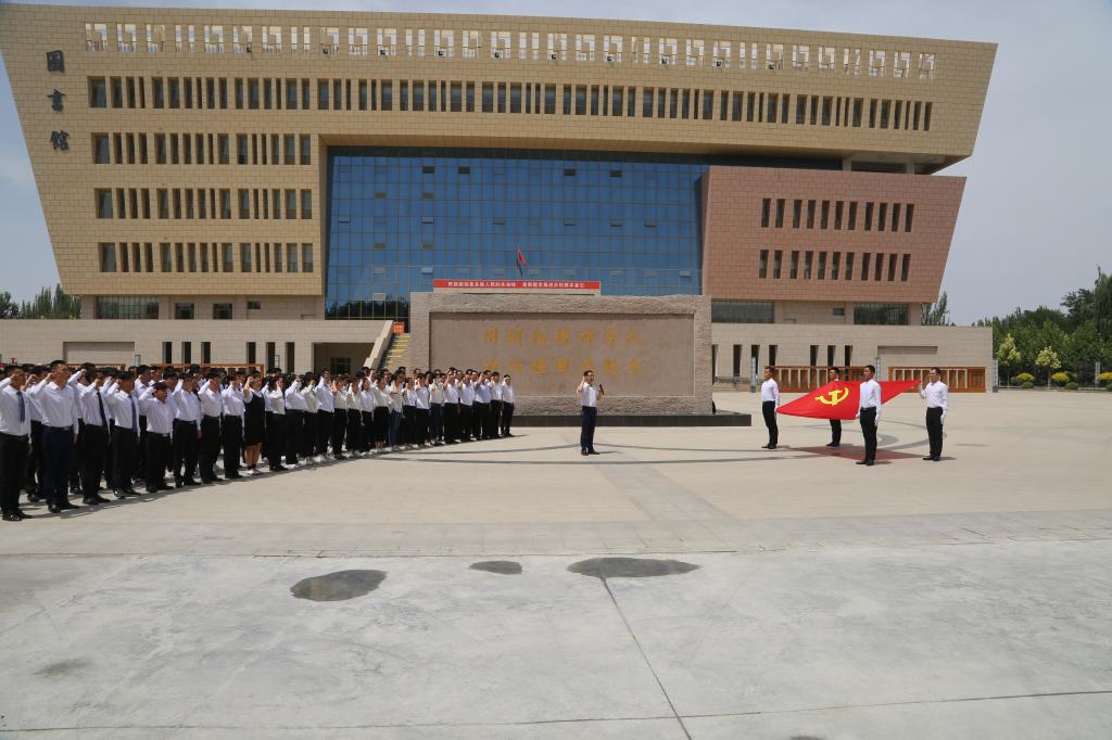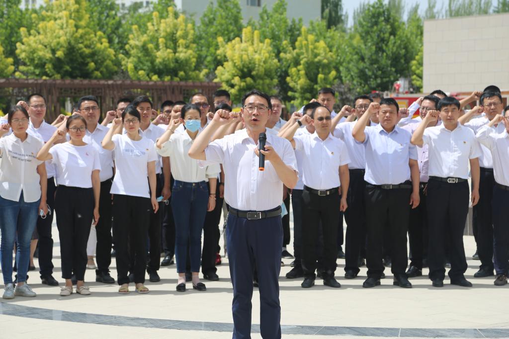 党委副书记、院长王旭峰的带领下面向党旗,高举右手,庄严宣誓,拳拳忠心,字字铿锵,他们用赤诚的红心表达对党无限的热爱和最衷心的祝福。