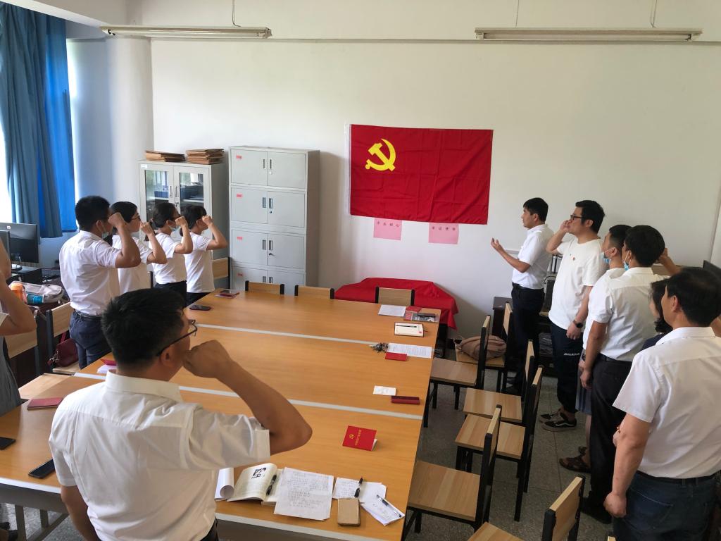 随后,在支部书记杨丙辉的带领下全体党员面对党旗重温入党誓词,在庄严的宣誓声中,党员同志也不由的忆起了自己第一次在党旗下宣誓的情景,忆起了自己当时加入党组织时的初心。
