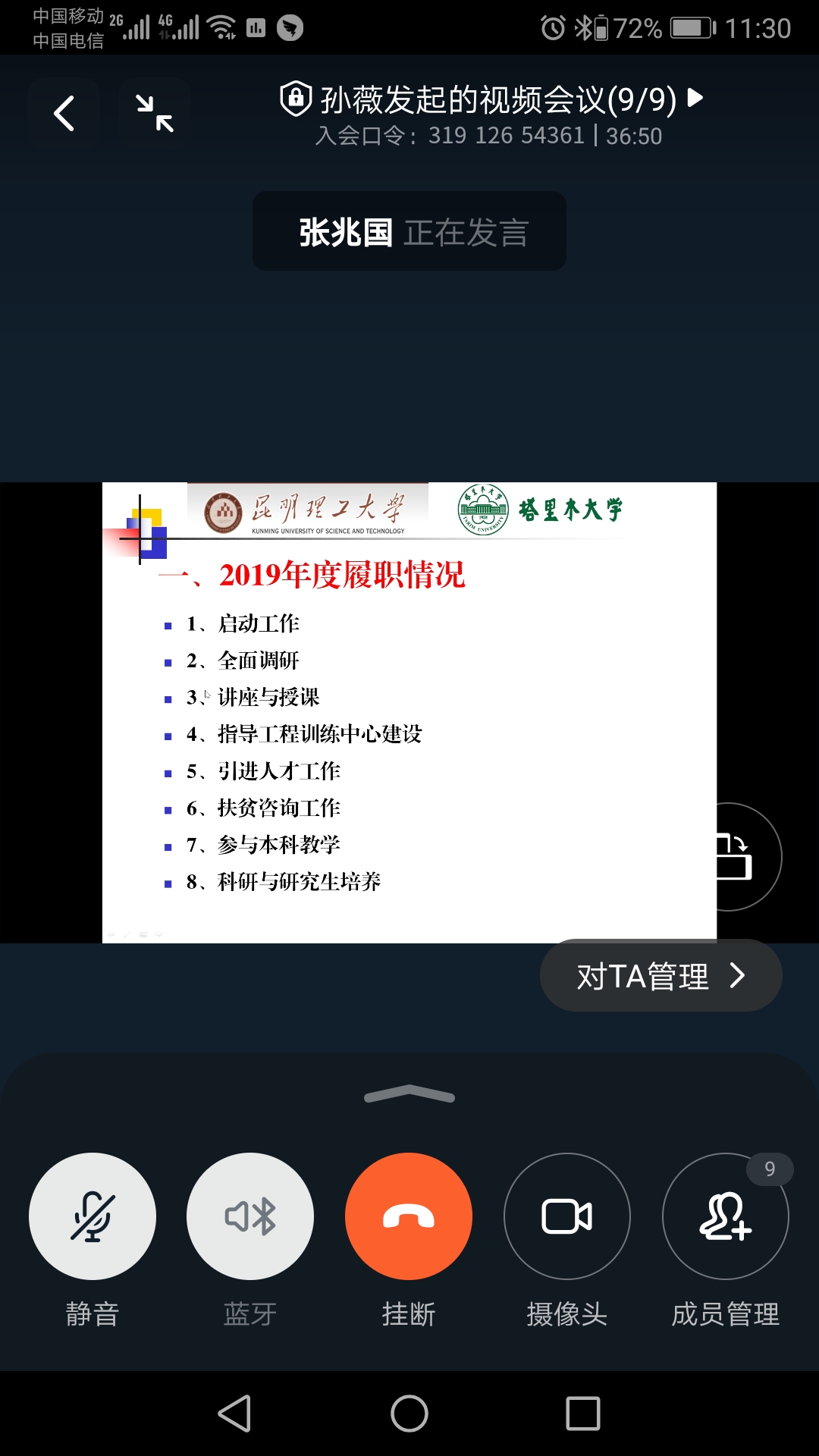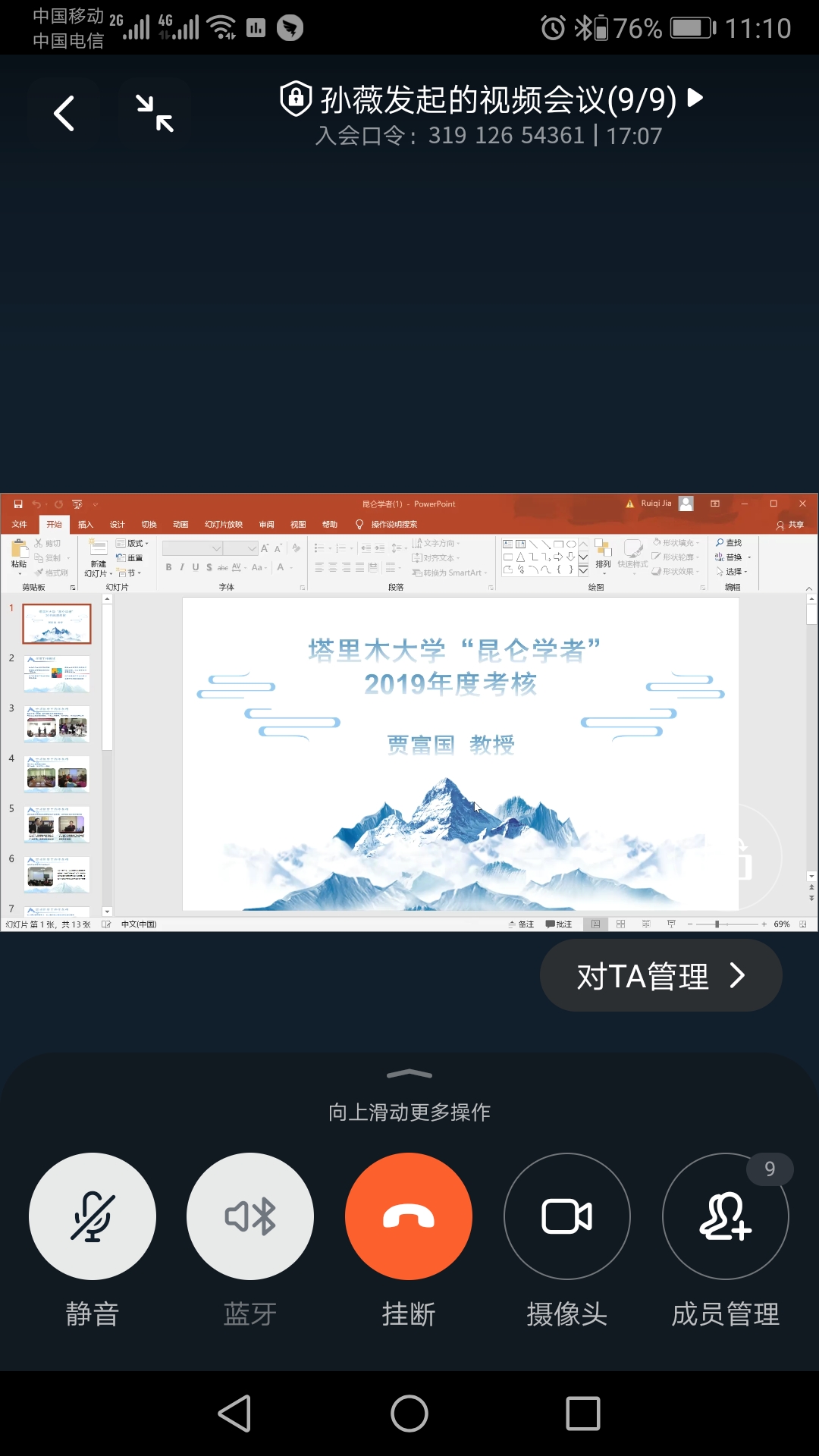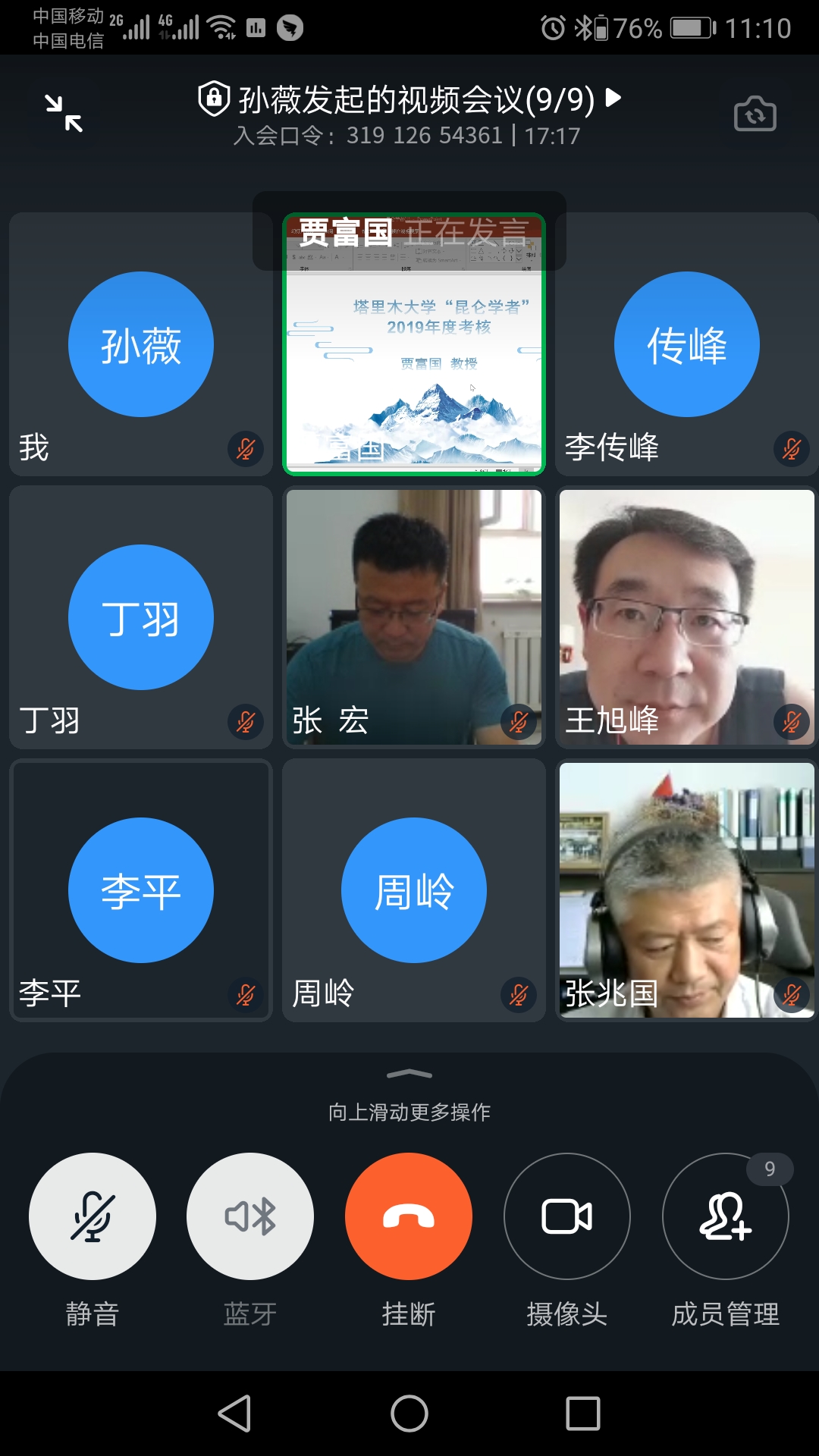 使用钉钉召开线上2019年度“昆仑学者”考核交流会。成人在线