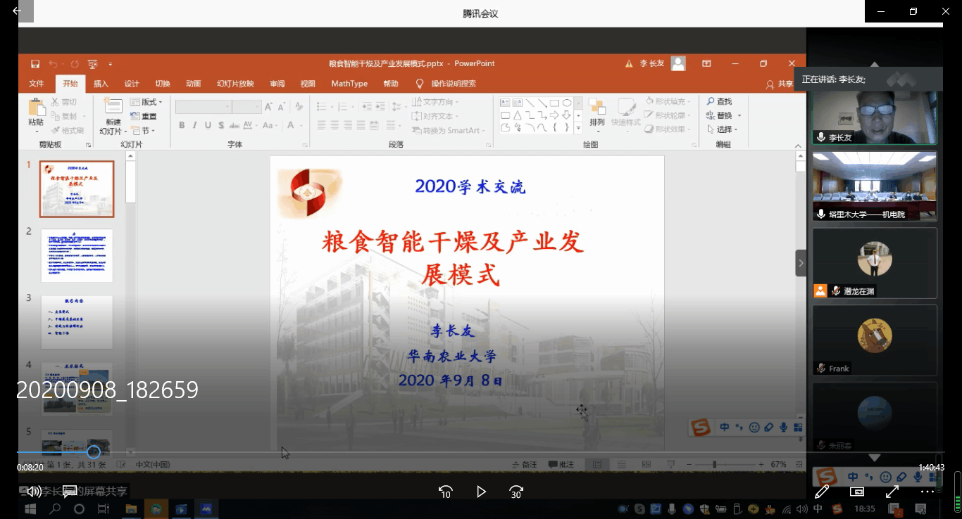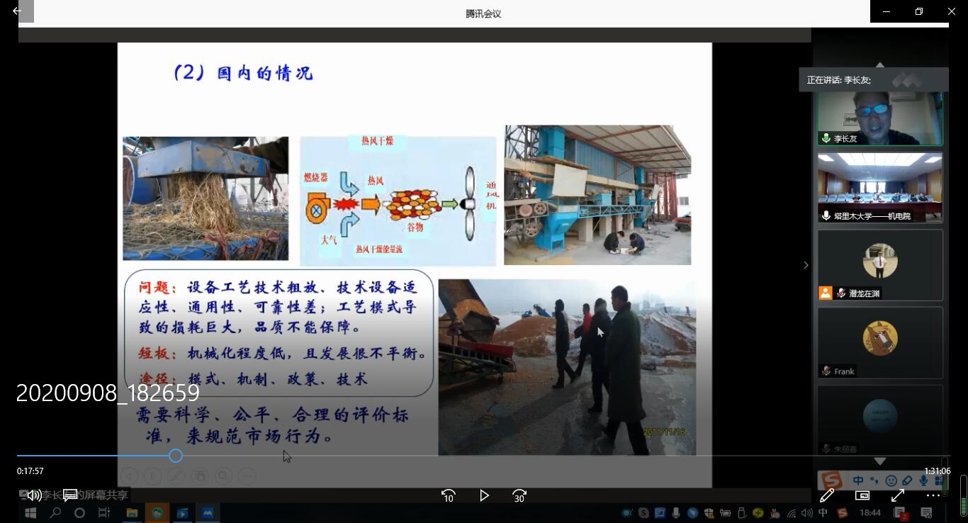 李长友教授作了题为《粮食智能干燥及产业发展模式》的学术报告。报告围绕粮食干燥的发展模式,干燥技术发展、传递与转化解析法,智能干燥等方面作了详细的阐述,同时结合成人在线