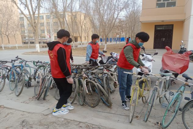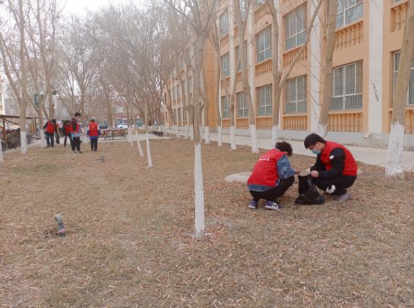 发放的一次性手套,不怕脏、不怕累、不怕苦,拿着垃圾袋穿梭在每一栋宿舍楼旁,用实际行动践行共建美丽和谐校园。