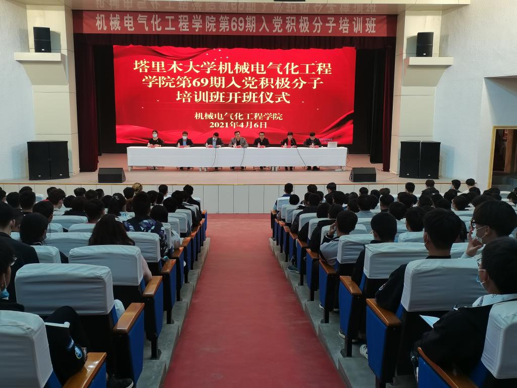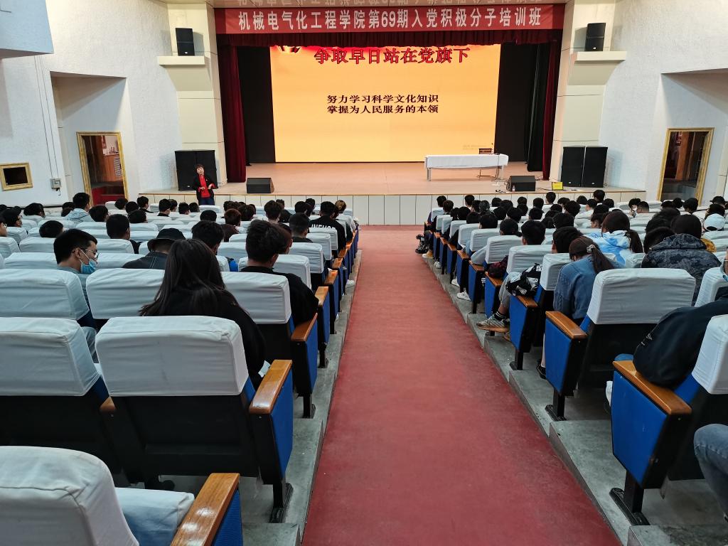在大学生活动中心举办第69期入党积极分子培训班开班仪式,机电院副院长张宏、农业工程党总支书记范修文、机械工程系党总支书记廖结安、农业工程系、机械工程系、电气工程系学生党支部书记张哲、孙天洋、鲁宁宁出席开班仪式,成人在线