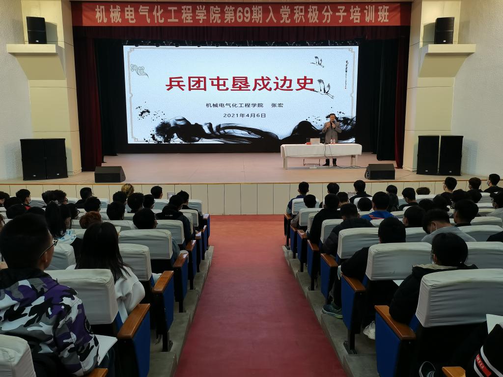 党建思政方面思想政治素质强,理论知识水平高的教师围绕认真学习“中国共产党的辉煌历程及经验、坚持‘四讲四有’标准、争做‘四个合格’党员、传承红色基因,争做胡杨青年、端正入党动机,早日加入党组织”等7个专题开展讲座,历时4天共8讲内容,在大学生活动中心集中讲座,203名学员参训。