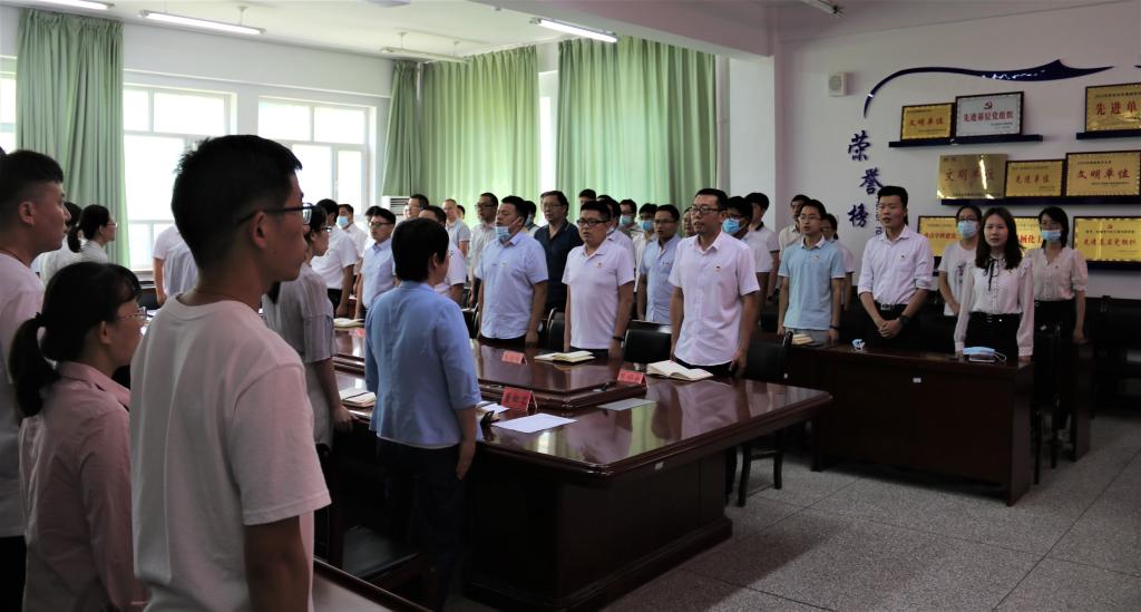 活动中,王旭峰致贺辞。由党委书记王红飙带领全体党员重温入党誓词。党员们面对党旗,举起右手,庄严宣誓,铿锵有力的誓言表达了对党的忠诚和热爱。在王旭峰的带领下,大家齐唱“没有共产党就没有新中国”,教育引导党员牢记入党誓词、铭记党的宗旨。