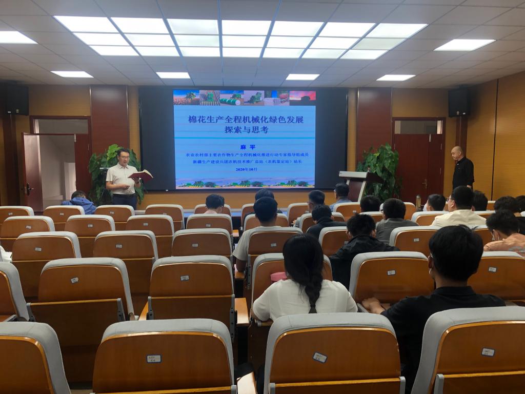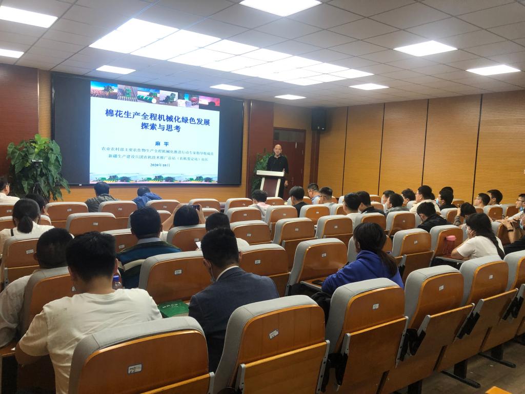 麻平分别作了题为《棉花生产全程机械化绿色发展探索与思考》《北斗智能装备在兵团农业的应用现状及发展思考》的学术报告。对棉花生产全程机械化情况,以及实现棉花生产全程机械化社会效益、经济效益等情况进行了全方位讲解。对北斗智能装备在兵团农业的应用现状、北斗智能装备在兵团农业应用中存在的问题及发展方向,作了详细讲解。
