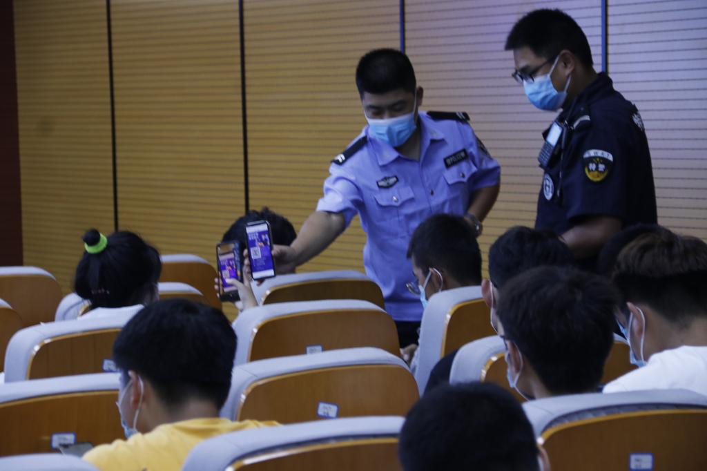 在工科楼318和线上钉钉群同步开展防诈骗、法制宣讲教育。一师反诈中心民警李强、塔里木律师事务所律师程鹏举为全院3100余名师生带去反诈、法制“盛宴”。