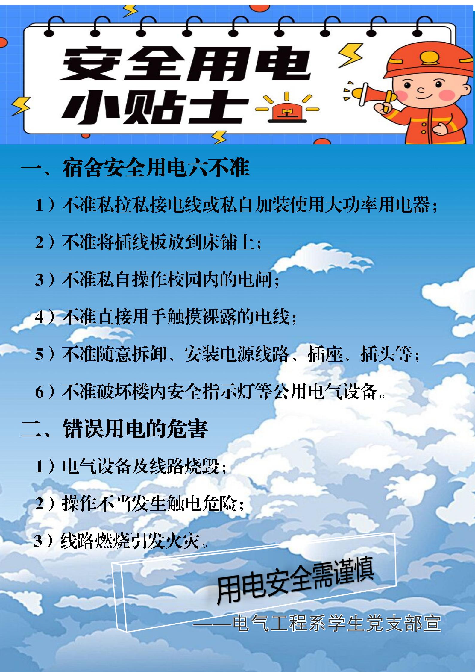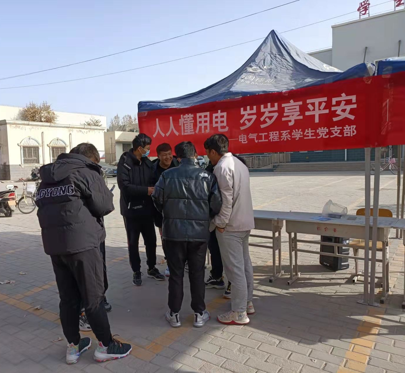 为积极营造和谐、安全、健康的宿舍环境,加强学生生活用电基本常识,11月24日,电气工程系学生党支部开展以“我为群众办实事·用电安全宣讲”为主题的活动。活动在四号食堂门前和成人在线