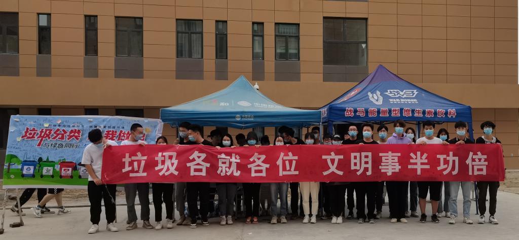 组织青年志愿者于4月24日在东扩区2号宿舍楼下开展了以“垃圾各就各位,文明事半功倍”为主题的垃圾分类知识宣讲活动。