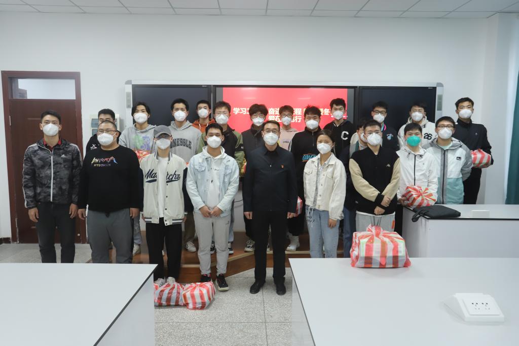 领导及全体辅导员分三组进行慰问,与留校同学们进行亲切座谈,并向大家发放慰问品,活动结束后与大家进行合影留念。