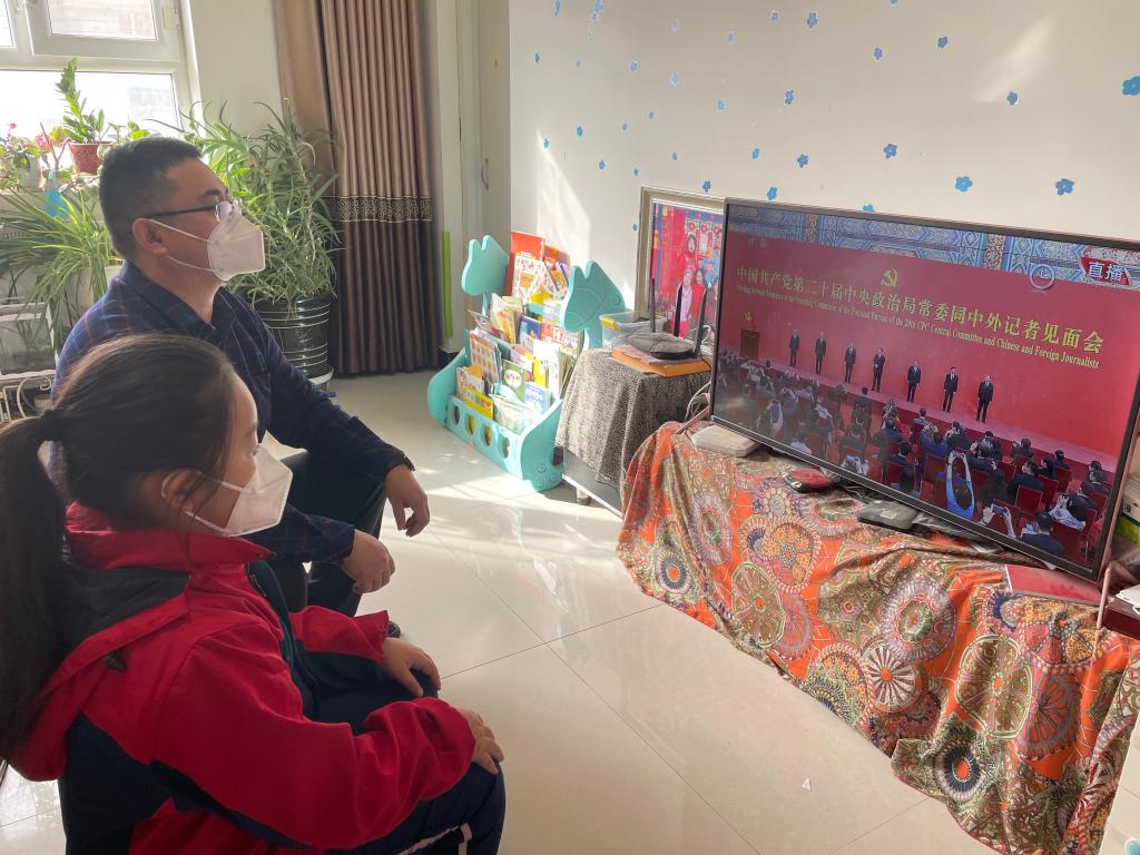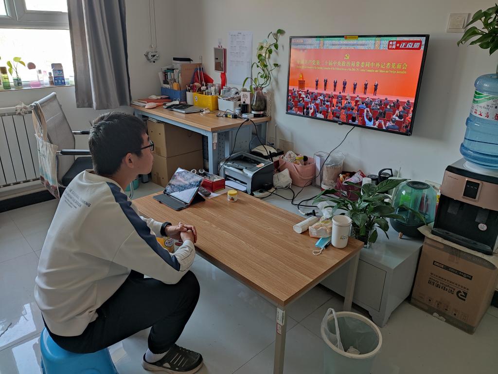 车辆2019级1班孔令轩在河北省唐山市观看中央政治局常委同中外记者见面会