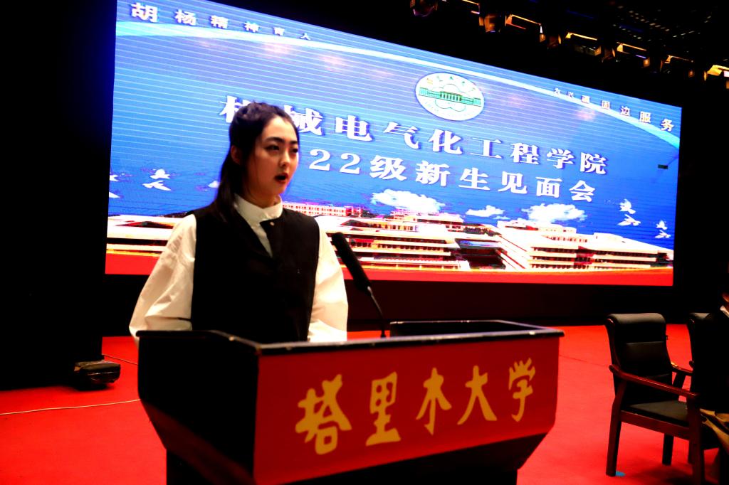全体师生向2022级新生的到来表示诚挚的欢迎,勉励同学们要心存高远,胸怀大志,要把个人的学习、成长融入国家的发展中,以脚踏实地的实际行动砥砺奋进,争做勇担民族复兴大任的新时代胡杨青年。