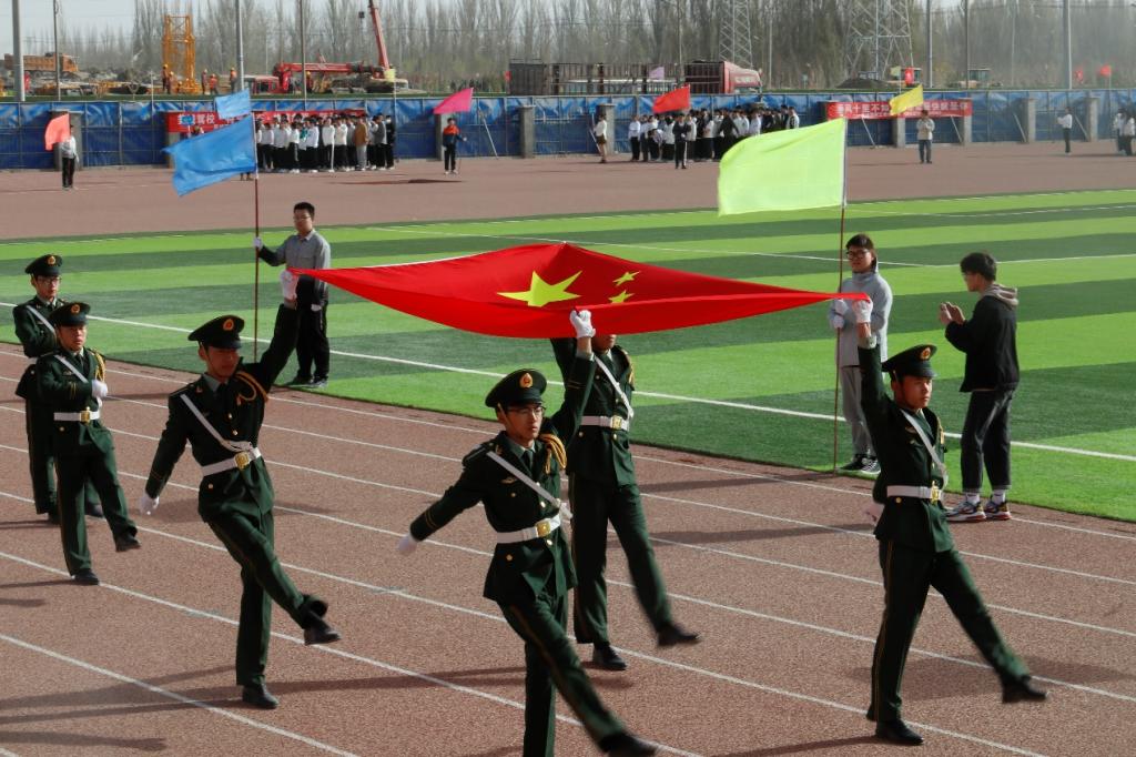 看!庄严的国旗队正徐徐走来,国旗手气宇轩昂