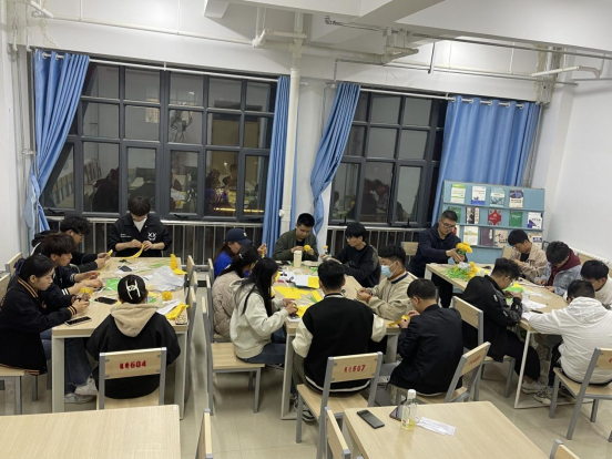 活动前夕,机电院各学生党支部自发在新校区一期党团活动室制作折花。(文/赵澳 王远欣 摄/电气工程系学生党支部 机电工程学生党支部)