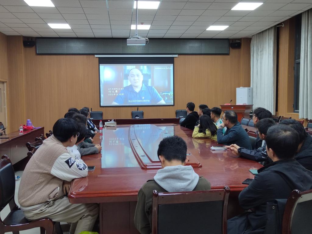 集体观看视频短片《我和我的祖国》,李成茂老先生讲述了自己的生活和工作从旧社会到中国特色社会主义社会的变化,见证了国家的变化,日新月异。通过通俗化、形象化描述,将人物故事从“有意思”变成“有意义”,形成“学爱国人物、讲爱国故事、弘扬爱国精神”的良好氛围,激发学生爱党爱国爱社会主义的情感。