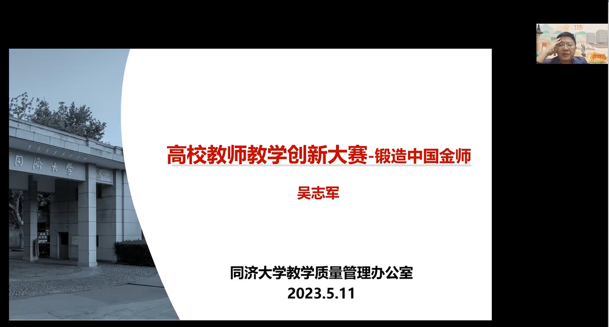 邀请同济大学吴志军教授线上作题为《高校教师教学创新大赛--锻造中国金师》的讲座,讲座由成人在线