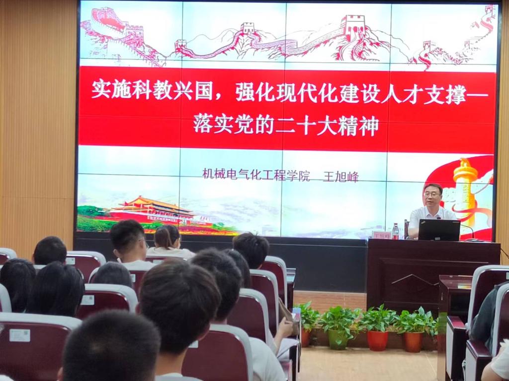 党委书记王旭峰以“实施科教兴国,强化现代化建设人才支撑——落实党的二十大精神”为题,在东扩区D109讲授主题教育专题党课,电气工程系全体教师、电气工程系学生党支部全体党员60余人参加了学习。