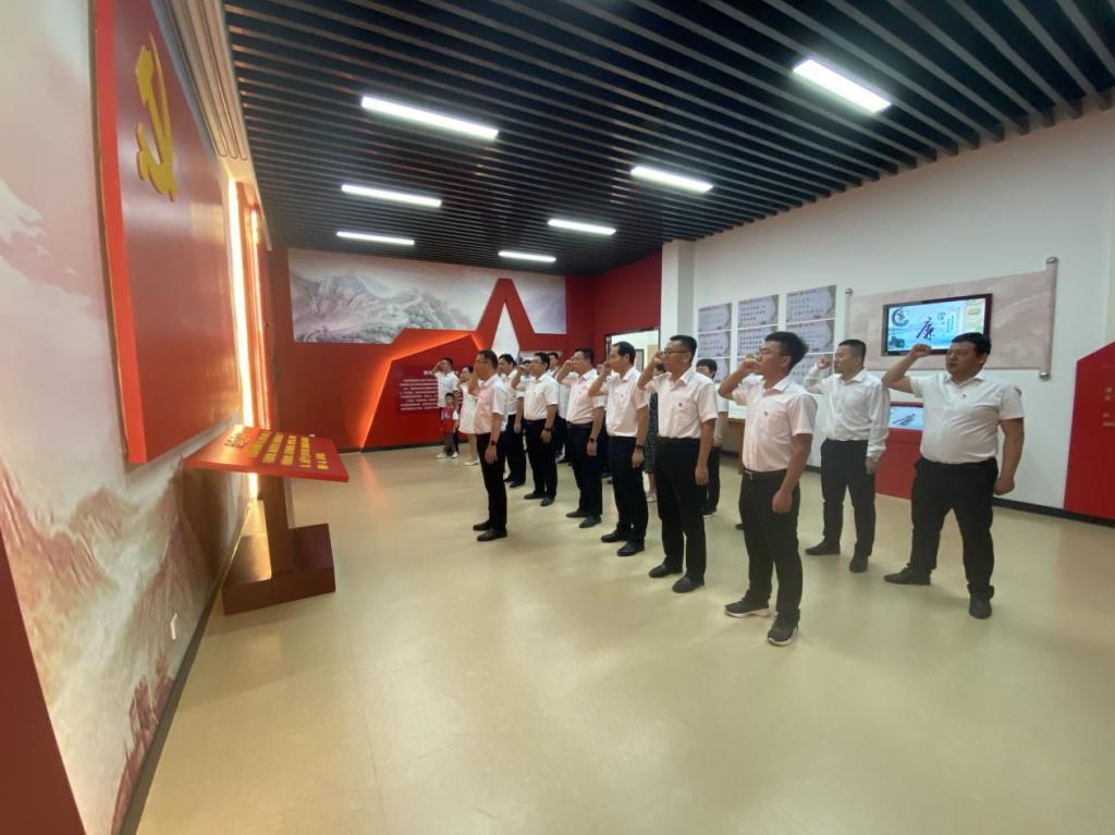 党委书记王旭峰带领全体党员干部面向党旗庄严宣誓,重温入党誓词,增强党的意识,牢记党的宗旨,守住入党初心,永葆党员本色。