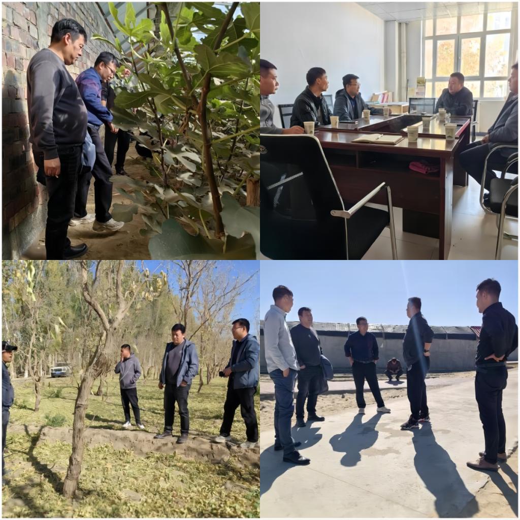 其次,廖结安教授和席琳乔教授到达皮山农场科技局,针对地区农业科技发展与地方经济协调发展等问题与皮山县科技局领导进行深入座谈。双方对科技兴农、科技助农等方面达成多项共识。来到田间地头,两位教授针对皮山农场设施农业及特色林果经济发展的现实情况与种植户深入交流,指导果树定制及管理技术等方面的知识。