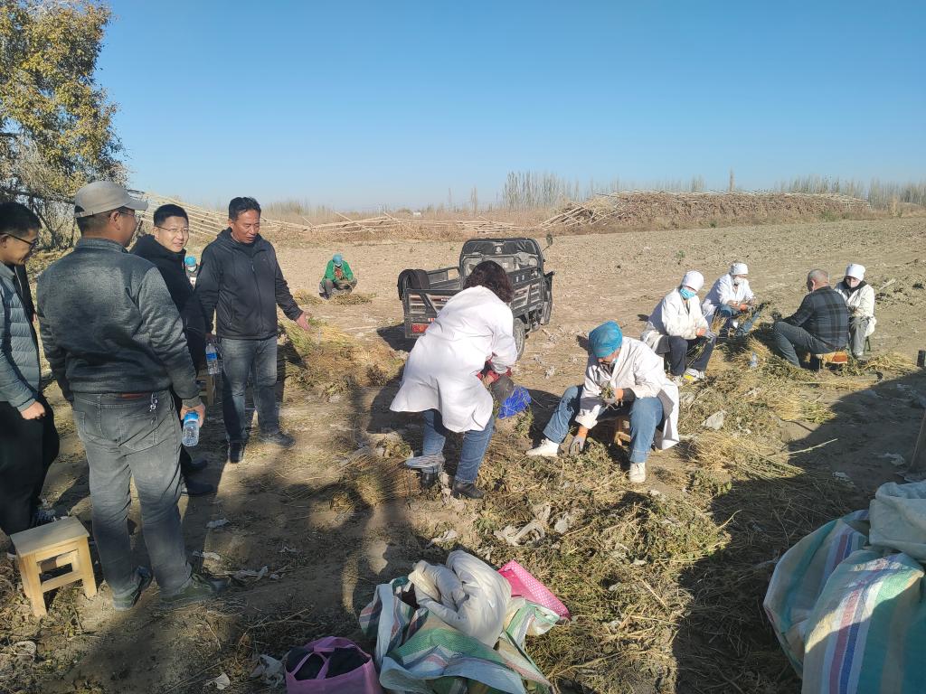 农机科技服务团队在阿克苏金天诚机械装备有限公司、和田吉亚丽人艾特莱斯丝绸有限公司和岳普湖中茧科技有限公司,进行滴灌带回收技术和桑树种植收获技术服务。