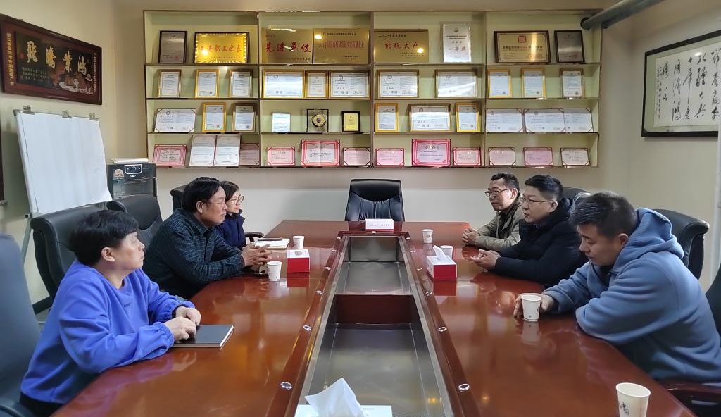 到阿克苏金天诚机械装备有限公司与卢登明总经理及装备研发人员进行座谈,讨论了滴灌带回收装备的技术方案及改进措,并对桑树播种机研发和试验情况进行研讨。