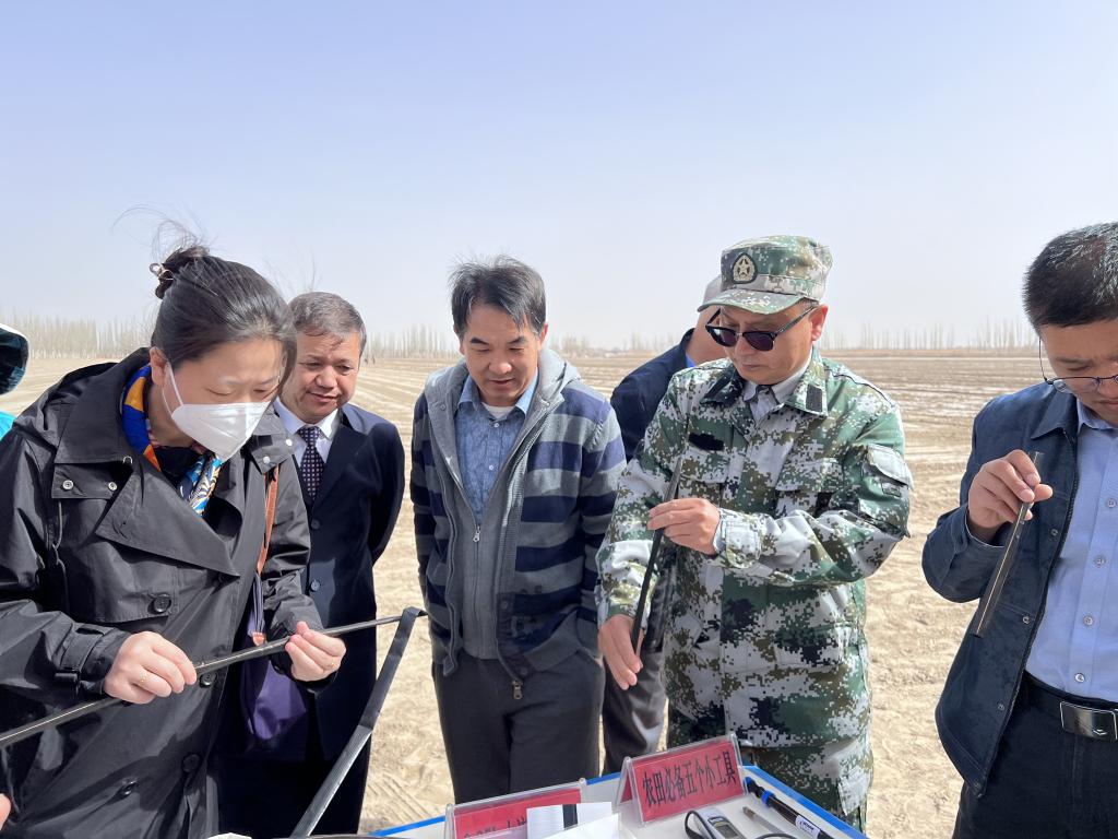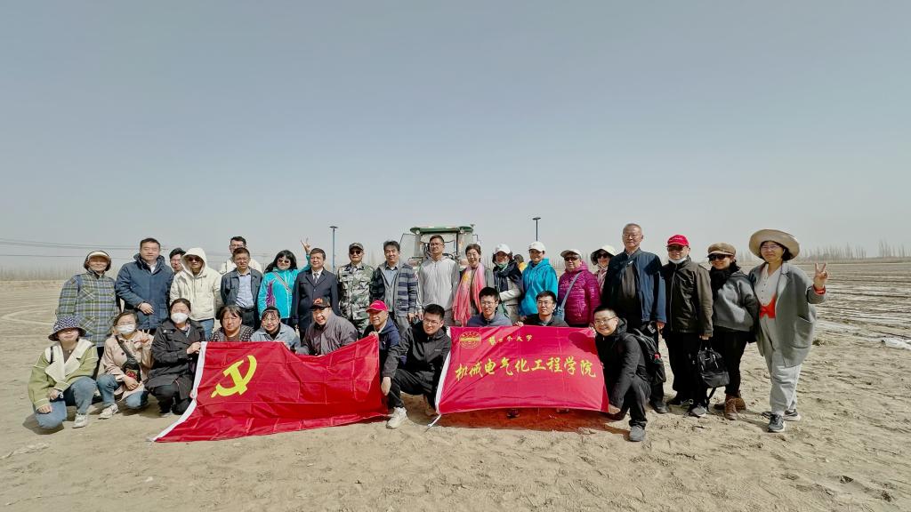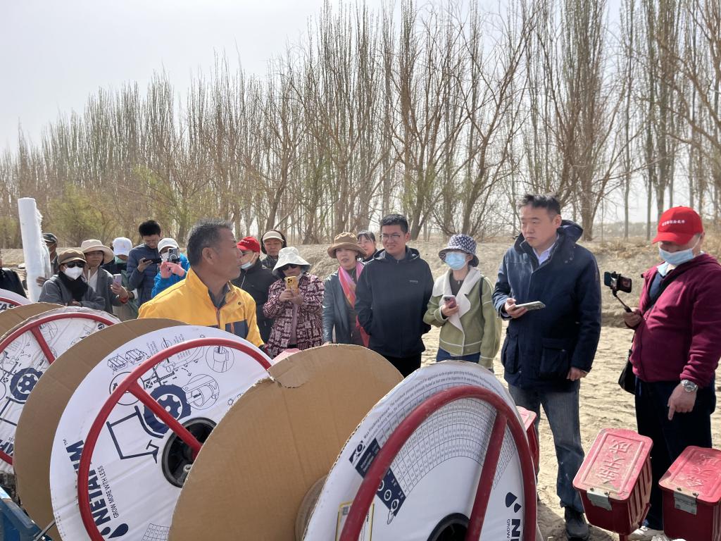 青年教师和银龄教师参观棉花春播的过程,在棉田的田间地头与种植户就棉花播种、灌溉、地膜铺设等问题进行了深入交流。