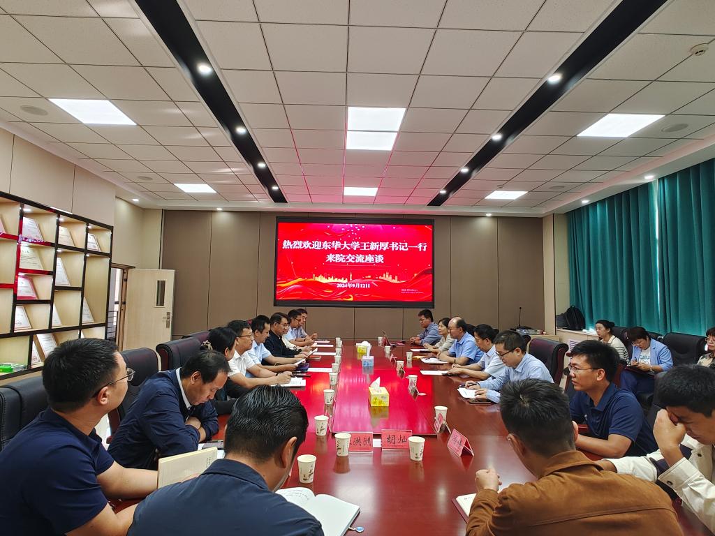 居来提·司马义欢迎王新厚一行的到来并介绍学校发展情况,对东华大学一直以来给予学校发展的支持和选派援疆干部来校工作表示感谢,希望双方能够在人才培养、平台建设、项目合作等方面进行深入交流。