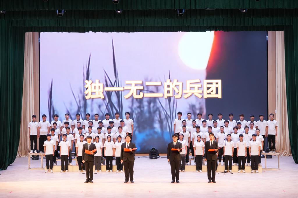 展示会上,同学们还表演了精彩的文艺节目。舞蹈《雅韵风华》、朗诵《独一无二的兵团》、合唱《光荣塔大》,展示了红色的基因和靓丽的风采,让展示会充满艺术气息。
