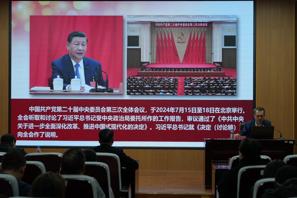 党员干部、师生代表作了题为“学习宣传贯彻党的二十届三中全会精神”的专题党课。