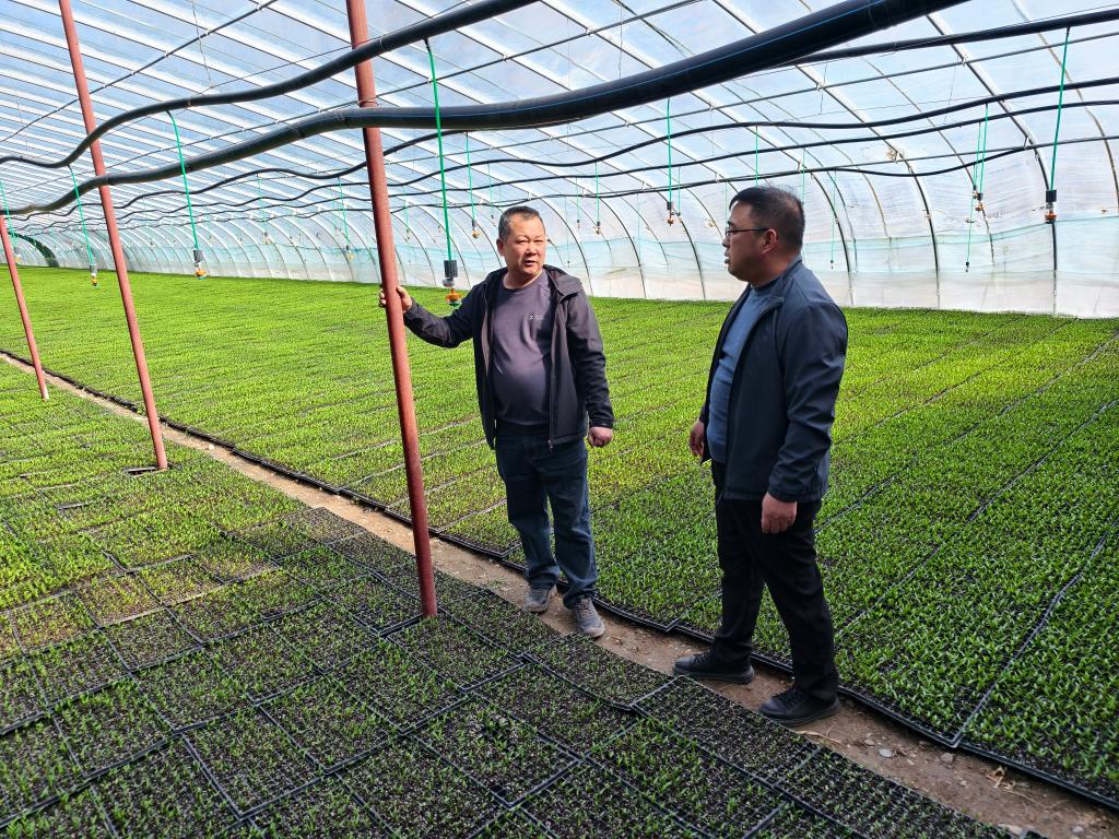 科技特派员围绕各连队温室大棚辣椒和番茄育苗情况,根据当前幼苗的长势,指导建议保温的同时,要注意降低棚内湿度、控水控肥、喷施高磷高钾叶面肥及植物生长调节剂控苗促花防寒,并注意预防幼苗感染根腐病等,还就下一步幼苗移栽做好前期准备工作进行指导。