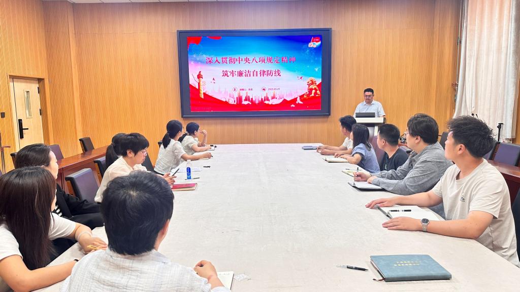 党委副书记、纪委书记李勇同志带领党支部全体党员重温“中央关于改进工作作风、密切联系群众的八项规定”并对其进行了深入的解读和阐释。通过结合具体案例,让党员们深刻理解廉洁自律的重要性。